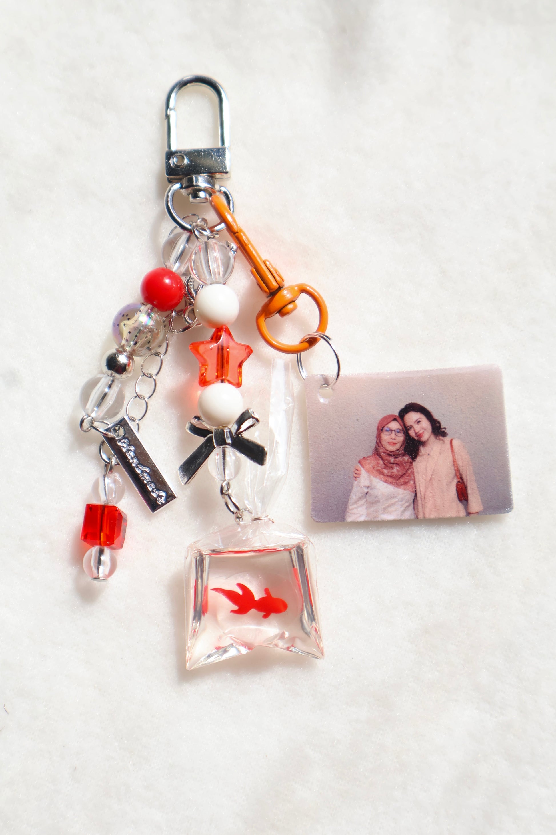 Bring your favourite memories to life with a unique touch! These custom photo print is made with shrinky dink paper and resin for the top coat giving them a fun, glossy and durable finish. You may choose either to have your piece made just the photo and the key ring or add charms, perfect for keychains or keepsakes.